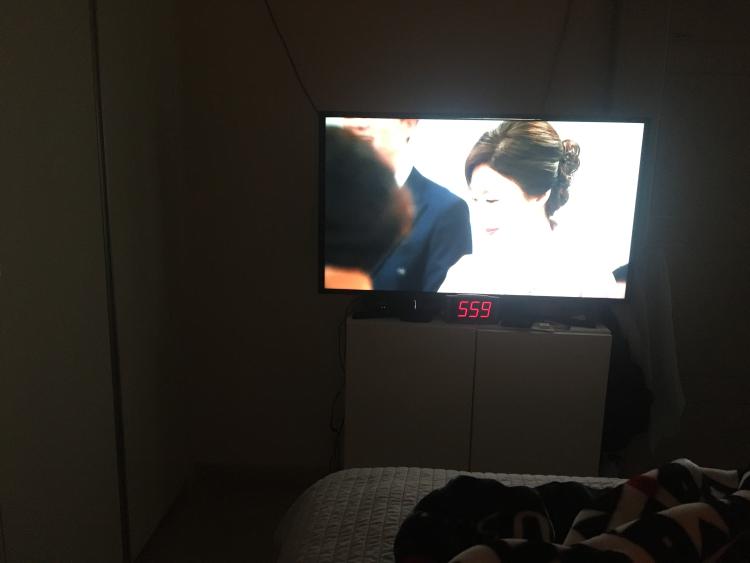 저희집 티비에요ㅎㅎ누워서 티비보는게 힐링!