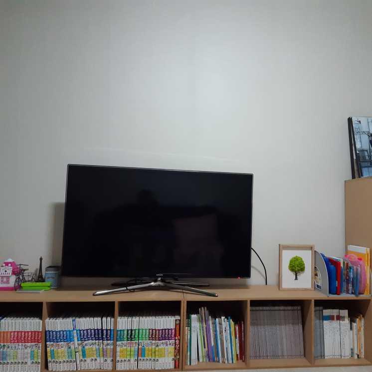 티비기 있고 아이책, 쇼파가 있는 거실입니다.