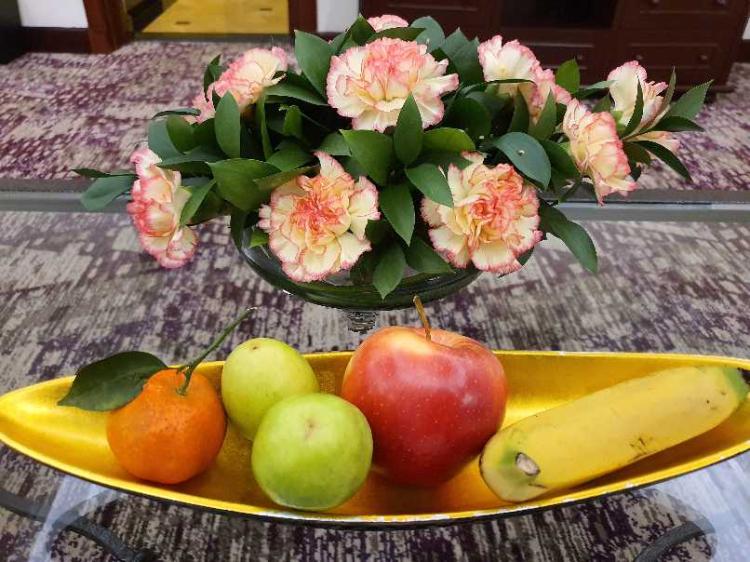 과일과 꽃으로 꾸며놓은 홈카페입니다~