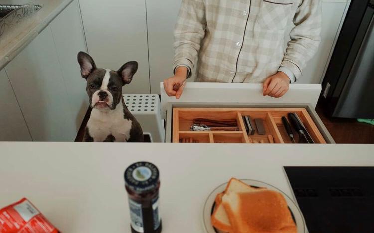 필요한 식기도구는 바로바로 꺼내서 쓸 수 있게 테이블 서랍장에 구비해뒀어요~