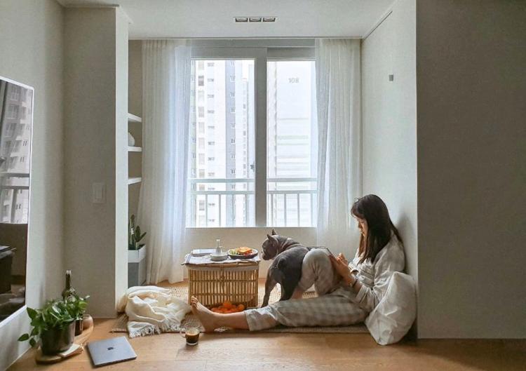 침실 베란다를 확장해 미니 테이블 하나 놓고 홈카페로 만들었어요~