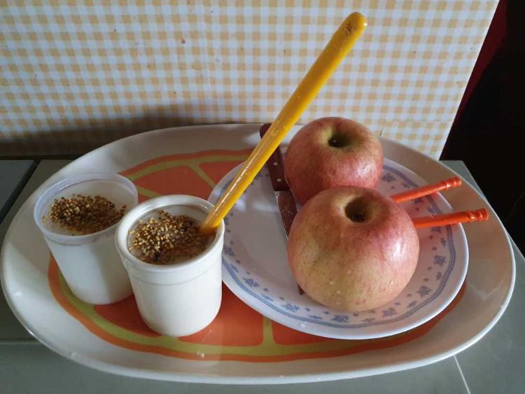 오늘 아침은 간단히 요플레와 사과 한개씩~