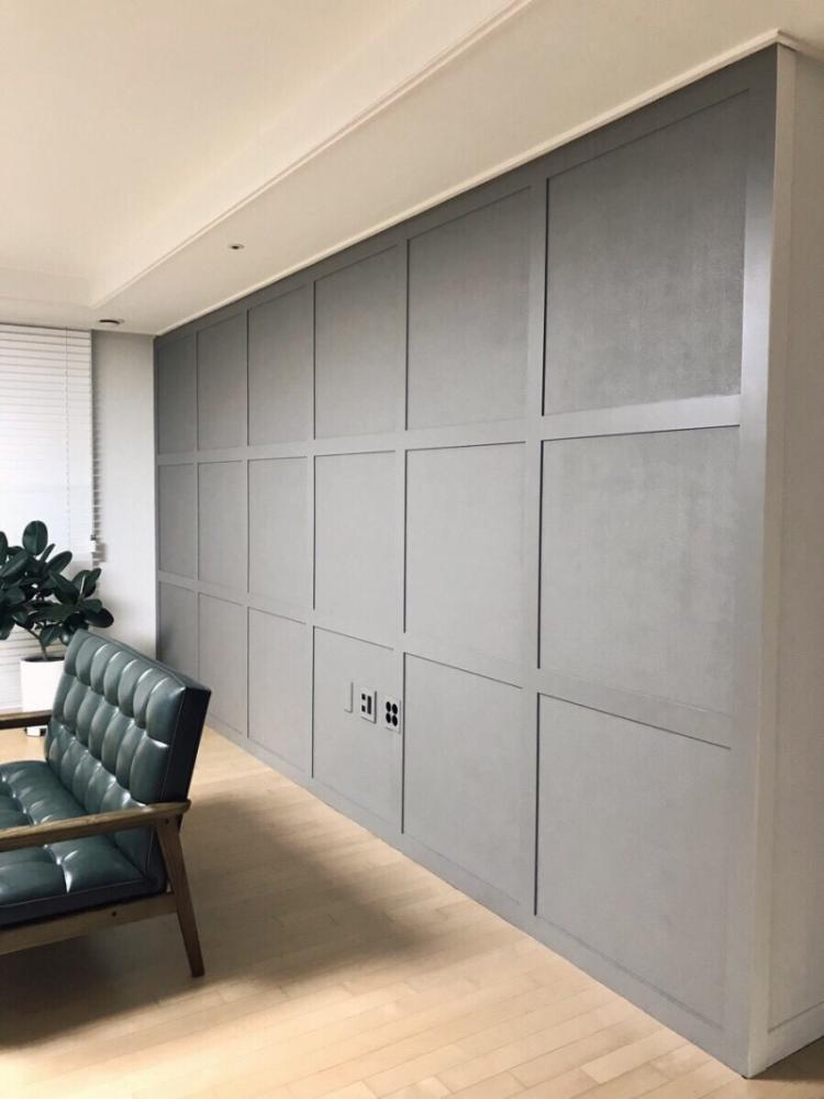 제가 셀프로 완성한 격자몰딩 웨인스코팅이에요.