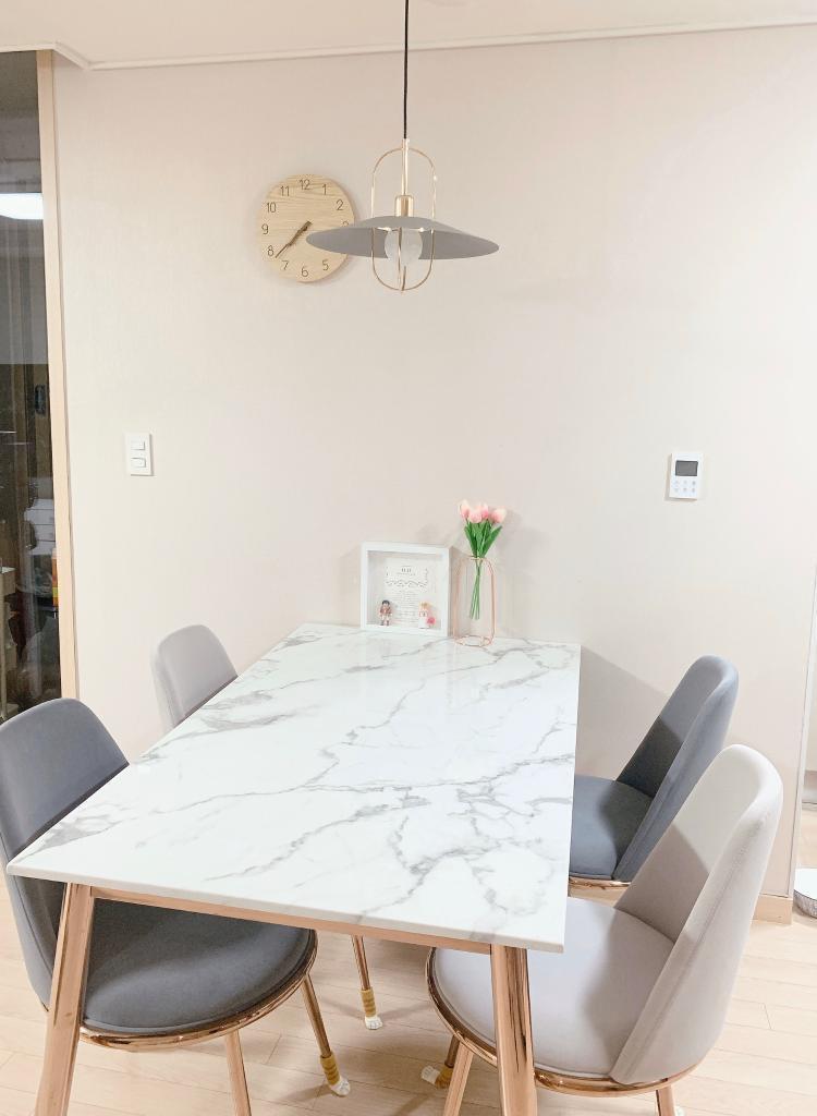제가 아끼는 두번째 공간 ㅎㅎㅎ 사실 주방이 거실 바로 옆이에요 !! 예전 집에서는 평수가 넓어서 거실하고 주방의 거리도 거리지만 막혀있는 구조였는데 이 집은 주방과 거실이 일찍선이라서 거실테이블을 치우고 식탁생활을 하자! 하고 식탁에서 TV를 보며 식사를 해요.