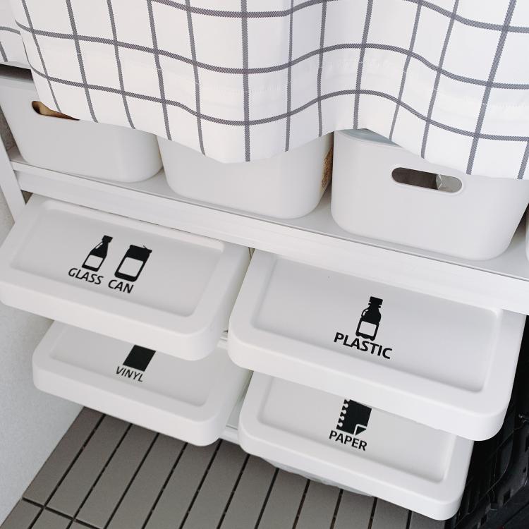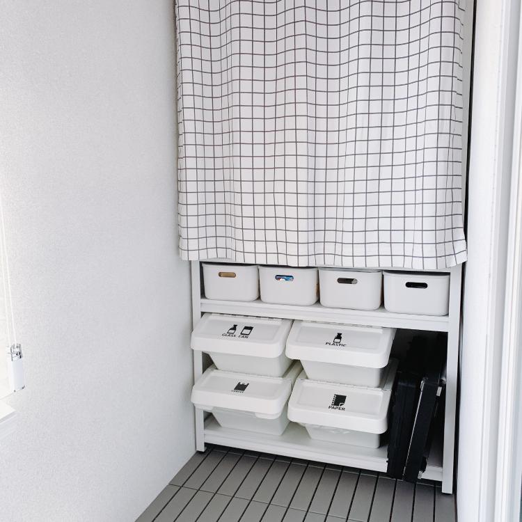 공간에 맞춰서 수납함과 분리수거함을 두었습니다