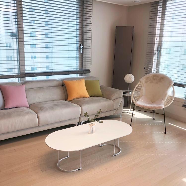 거실에 흰색 테이블을 샀어요^^ 티비 앞에서 차 한잔하기 좋아요!