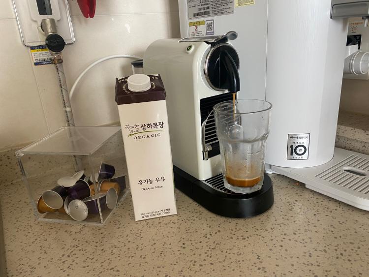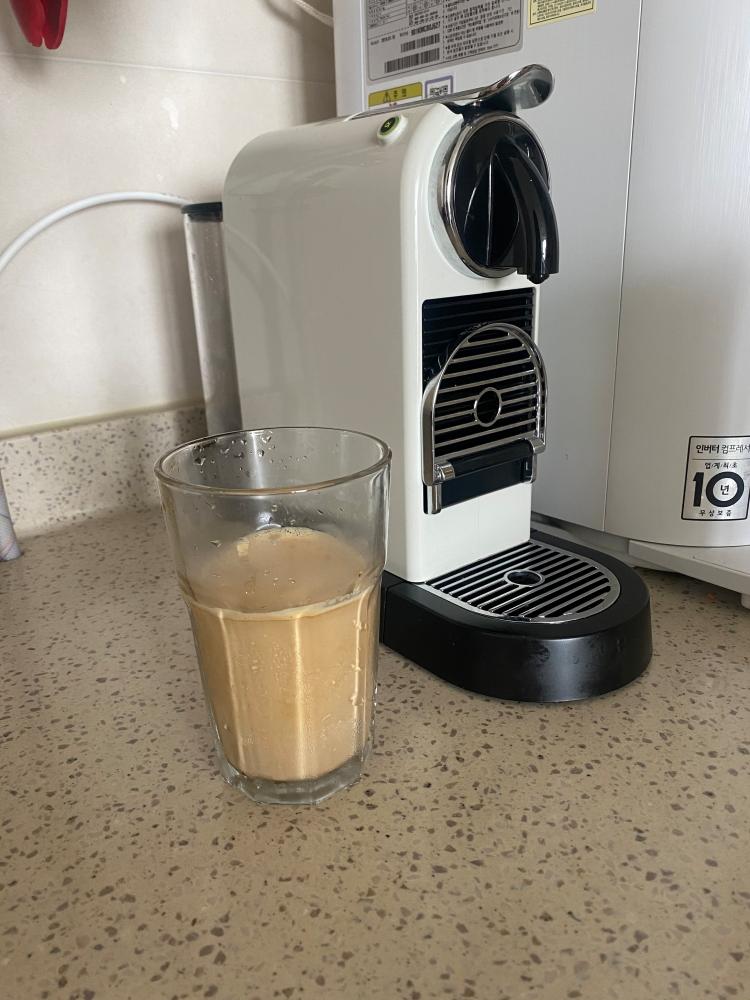 출근 전, 오랫만에 라떼 한잔 만들었어요 ~ 얼음을 얼려놔야할 계절이 왔네요~