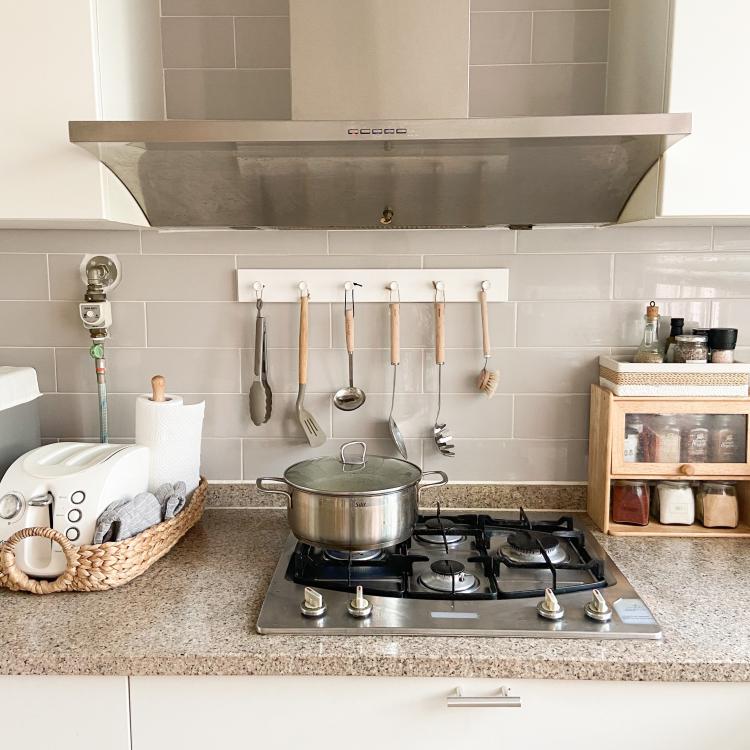 우측엔 양념통을 두고 있어 동선이 편리해요 ㅎㅎ