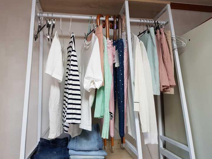 입은옷은 옷장에 안 넣고 오픈형 행거에 걸어놔요