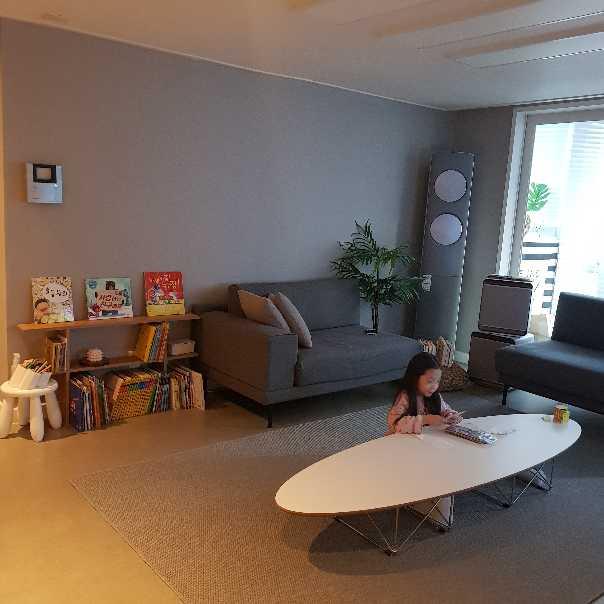 무풍과 함께하는 아이가있는 거실입니다