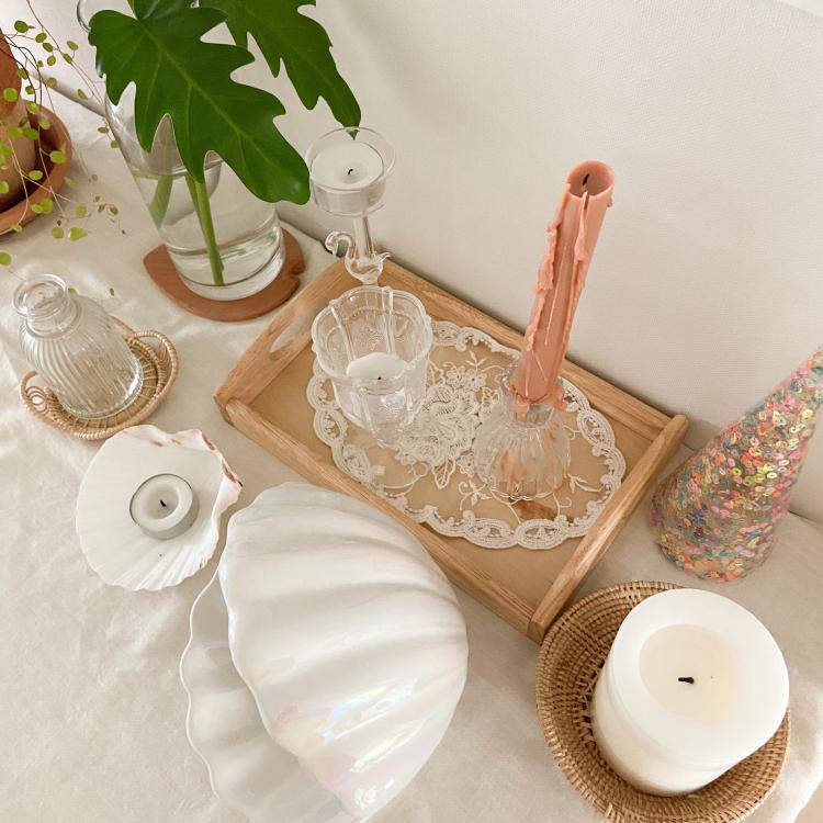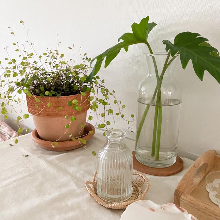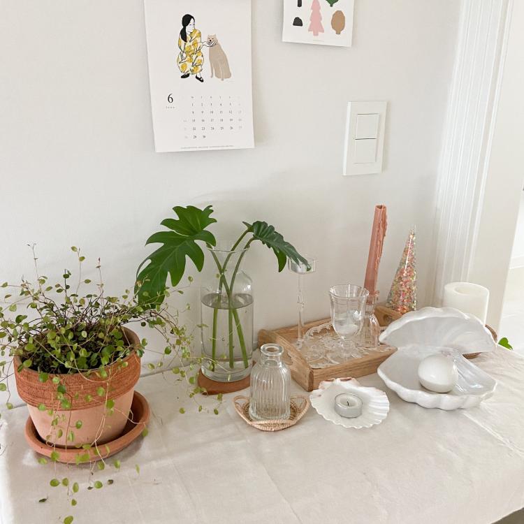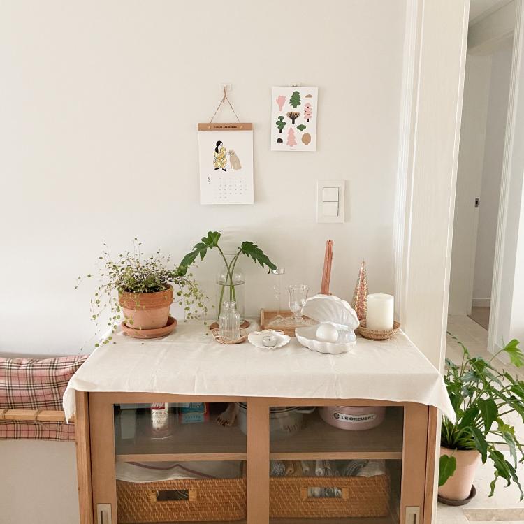 싱그러운 그릇장 위 소품 공간이에요 :)