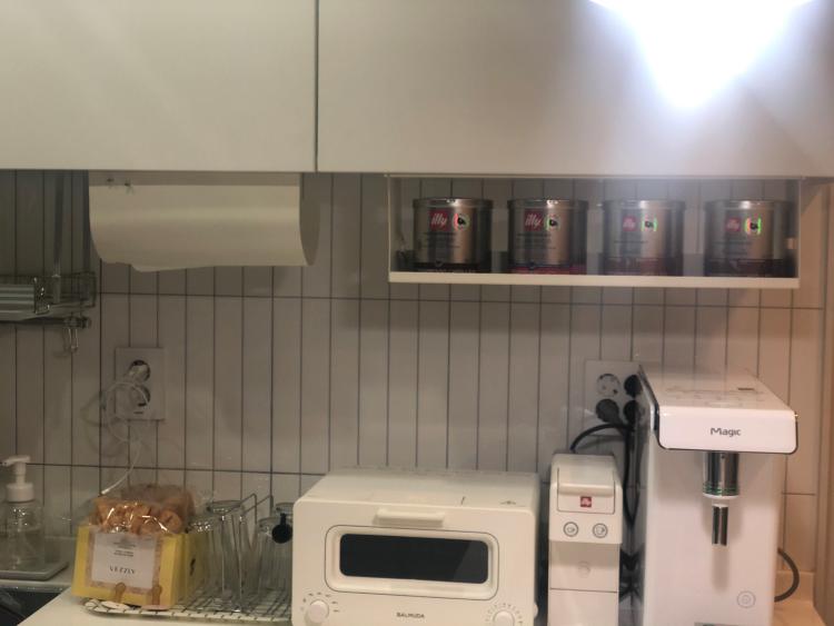 위아래로 남는 공간을 이용해서 수납하니 한층 더 깔끔해진거 같네요. 저희집 홈카페르루담당하는 공간이에요