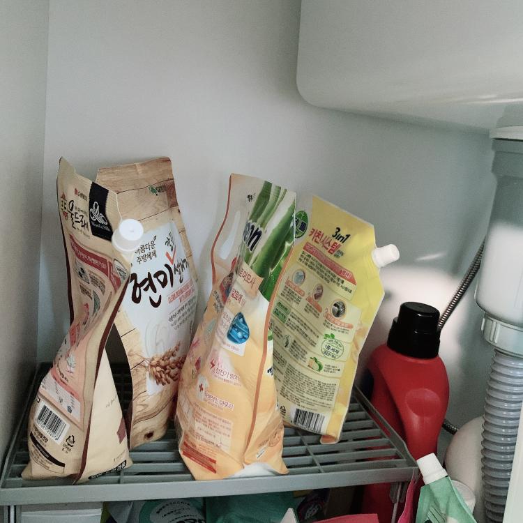 아래 수납함에는 세제들을 넣어놓아요~