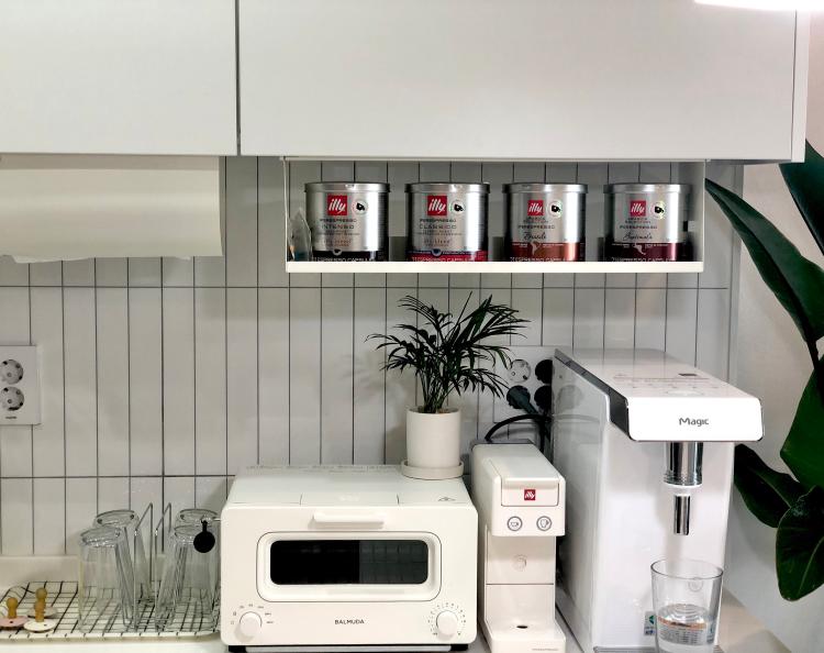 이렇게 아일랜드에 기대서 토스트 하나와 커피 한 잔을 마시며 창 밖을 보면 말그대로 힐링이에요~