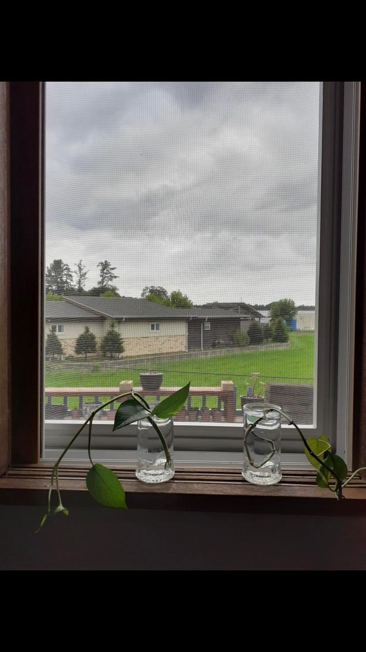 맥주잔에 식물 키워보려고요~ 안방이 초록초롱해져서 좋아요. 어서 뿌리가 나왔으면!