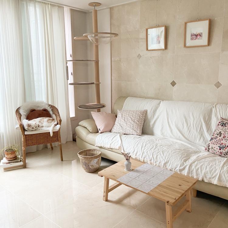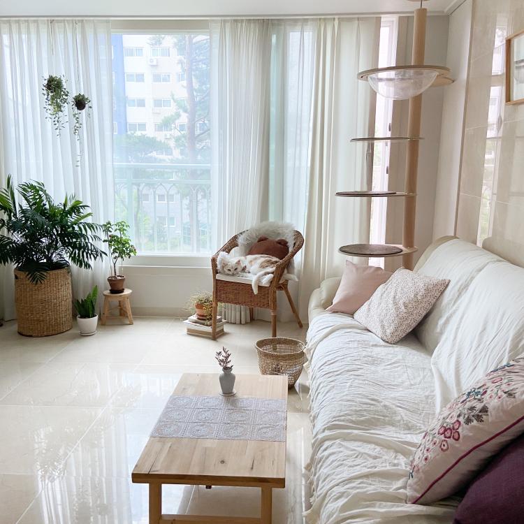 각종 패브릭을 덮어 톤을 맞추고 있어요.