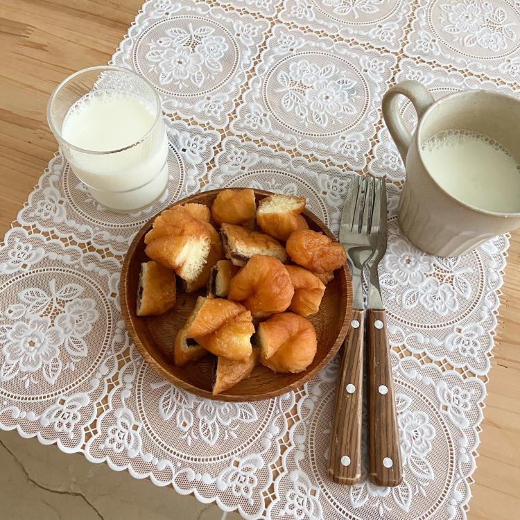 거실에 있는 원목 테이블에선 종종 이렇게 간식도 먹고 밥도 먹곤 해요 ㅎㅎ