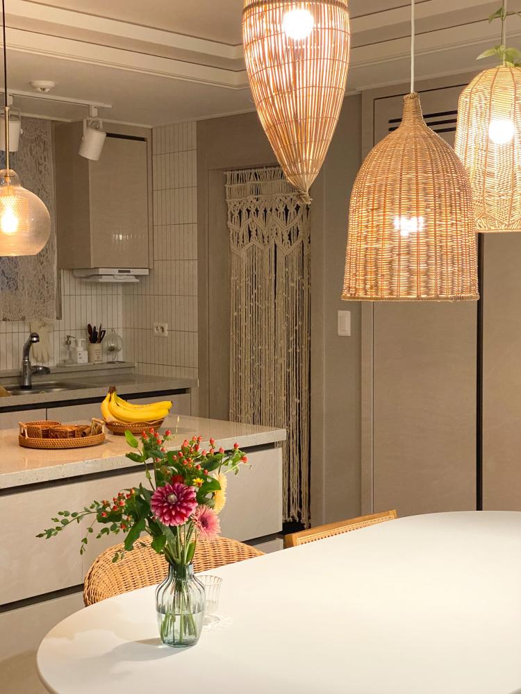 밤이되면 더 아늑해지는 휴양지 리조트같은 주방이에요.