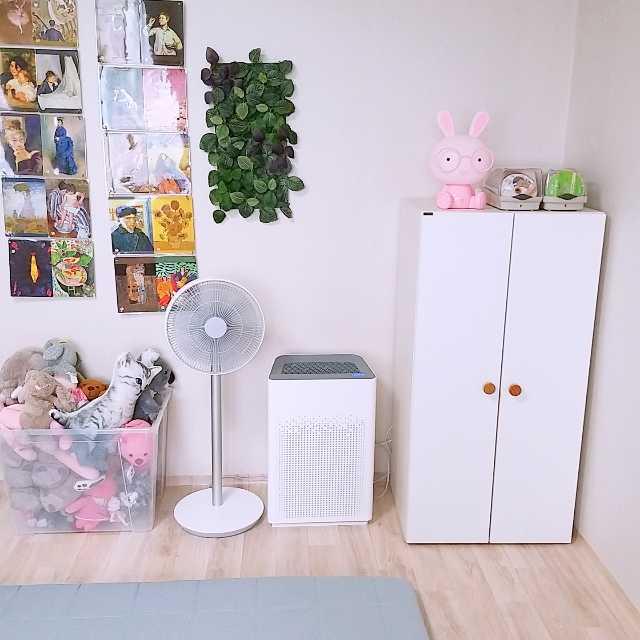 한쪽엔 샤오미 선풍기와 공청기 아이의 인형바구니가 있어요