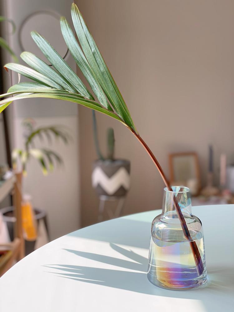 화이트 테이블 위에 두니 화병이 오로라빛을 제대로 발휘하네요.
