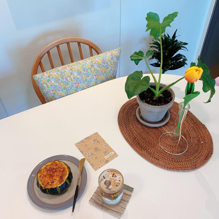 저희집 홈카페 테이블 입니다. 바닐라라떼 한잔하며 티타임 중이에요^^