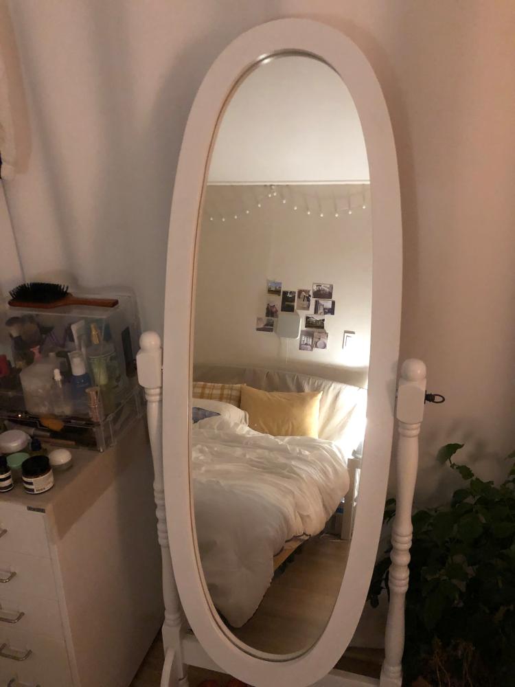 거울에 비치는 제가 좋아하는 침실모습이에요