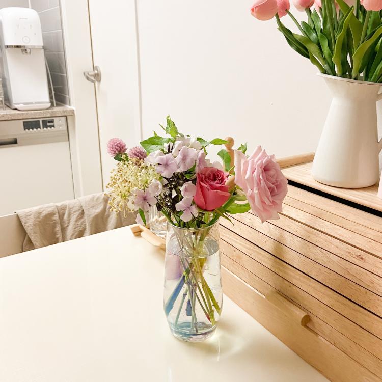 얼마 전 선물받은 꽃으로 주방이.화사해졌네용