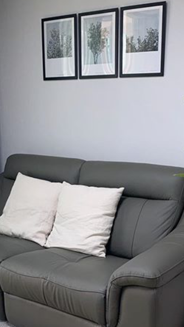 거실에 세련된 소파와 액자로 포인트를 주었어요.
