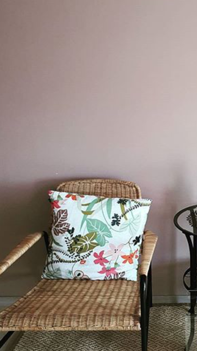 평범한 나무의자에 포인트로 꽃무늬쿠션을