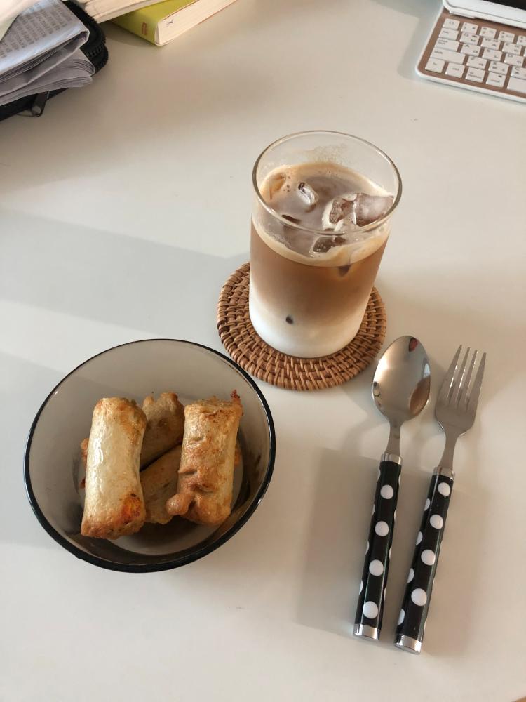 라떼와 잡채 어묵으로 먹는 아침!