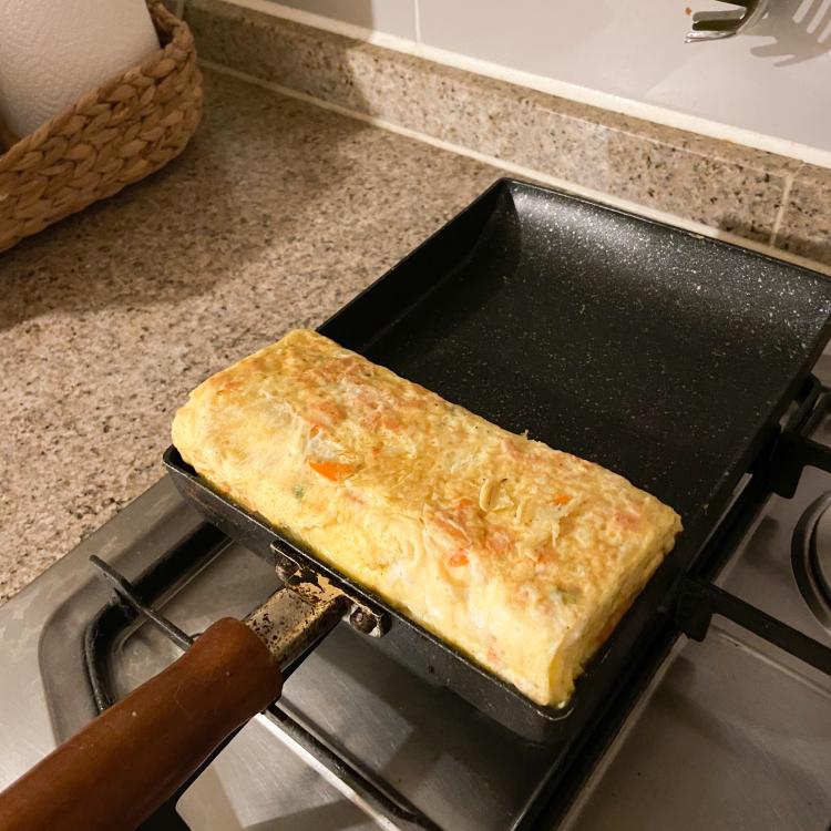 계란말이 팬으로 말면 엄청 쉽게 만들 수 있어요. :)
