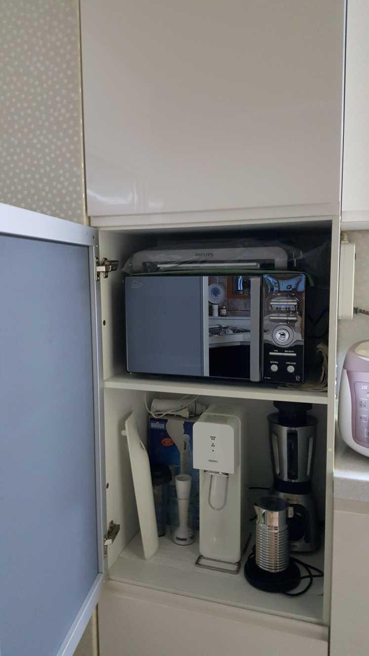 깔끔하게 수납장 안으로 들여보낸 전자렌지예요