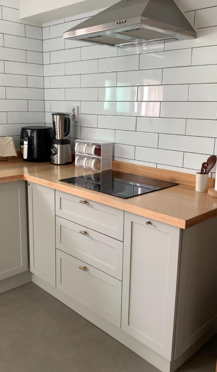 2년째 잘 쓰고 있는 원목주방입니다. 원목상판이 사용하기 편하게 마감처리 되어 있어서 쓰기 어렵지 않아요.
