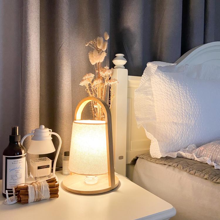 협탁 위엔 잠을 위한 소품들만 올려져있어요. 스탠드, 스프레이, 캔들 등이랍니다 ㅎ