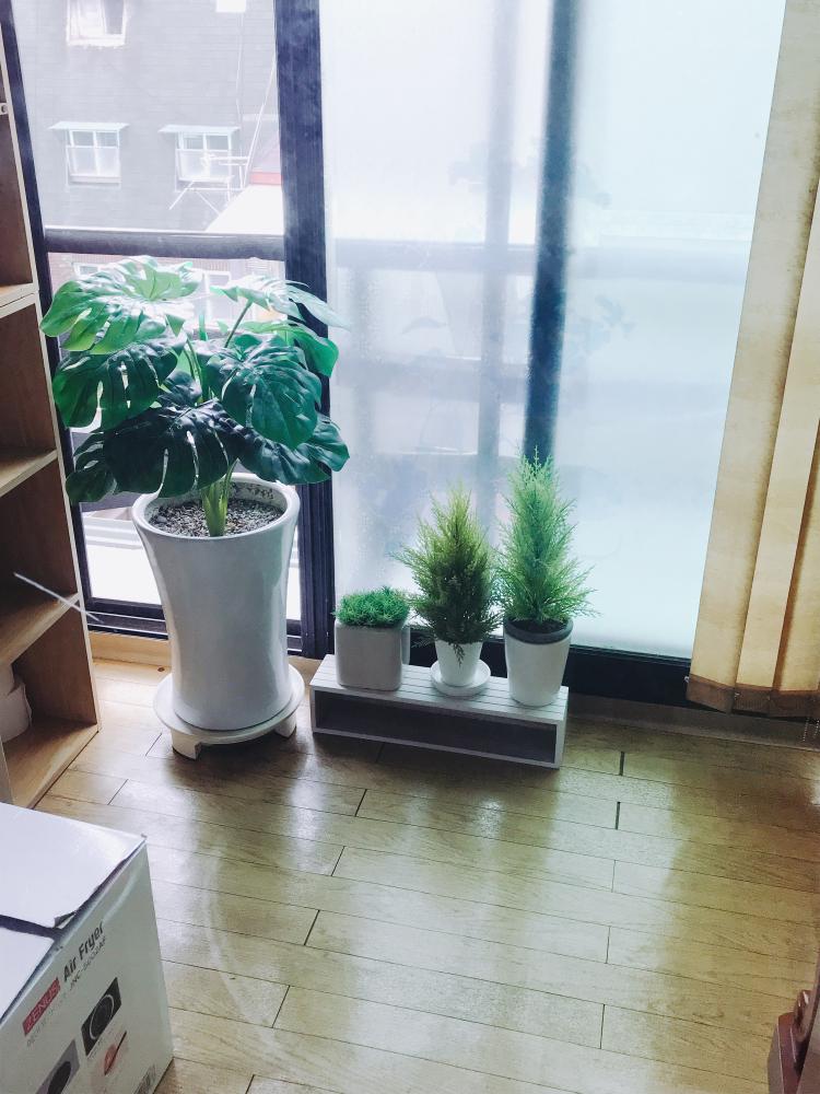 베란다 조화 화분들