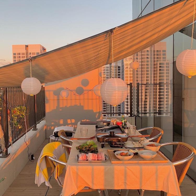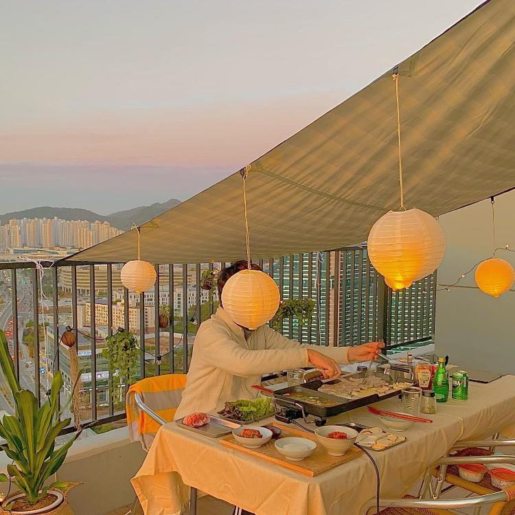 노을이 예쁘게 지던 따뜻한 가을날, 테라스에서 즐기는 고기 파티! 멀리 나가지 않아도 집에서 즐기는 소소한 행복입니다.