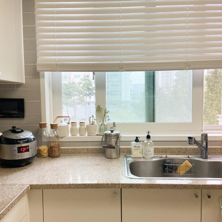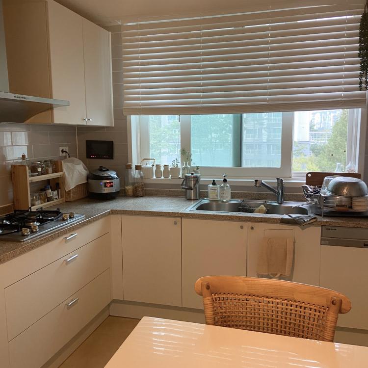 해가 뉘엿뉘엿 져갈 때의 주방 모습.