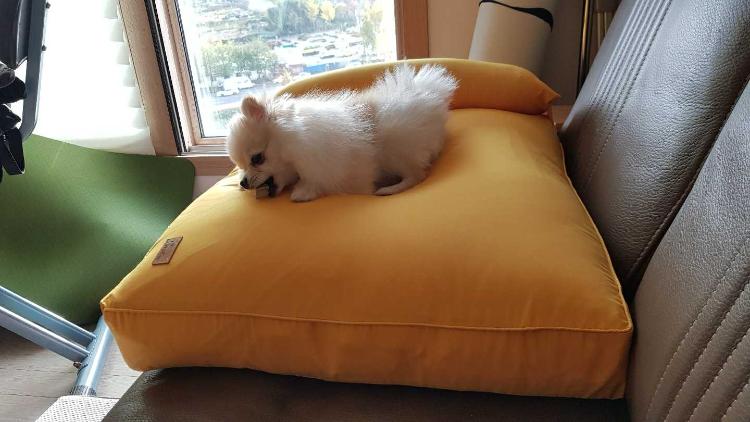 울집 멍뭉이가 좋아하는 쇼파위 쿠션자리에요^^!