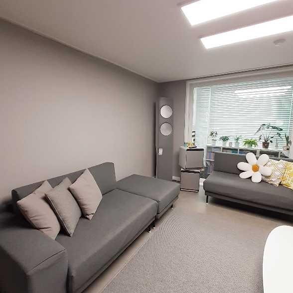 그레이느낌 가득한 거실이네요