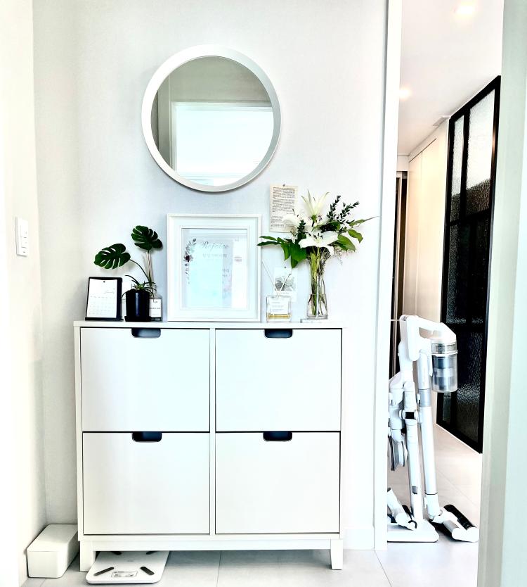 화이트인테리어! 저희집은 컨셉이 화이트에요. 이번에 꽃도 화이트로 선물받았는데 꽃꽂이 해놓으니 잘 어울리네요.