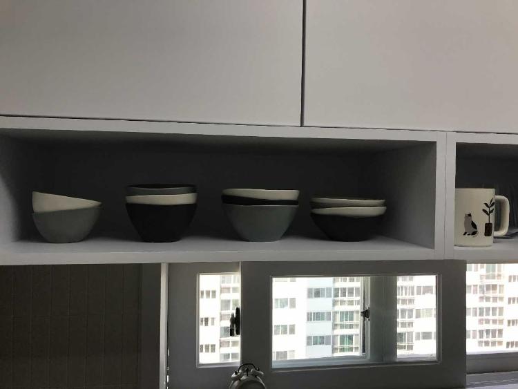상부장을 맞춤으로 제작해서 자주사용하는 그릇은 밖에 놔두니 넘 편한거같아요~!