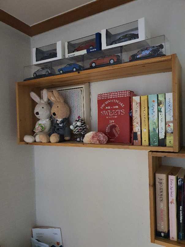 현관 벽면에 핸디코트를 발라서 빈티지 느낌을 살리고 재단 원목을 주문하여 DIY 장식대를 설치, 소품을 놓아두니 공간이 입체적 이네요!