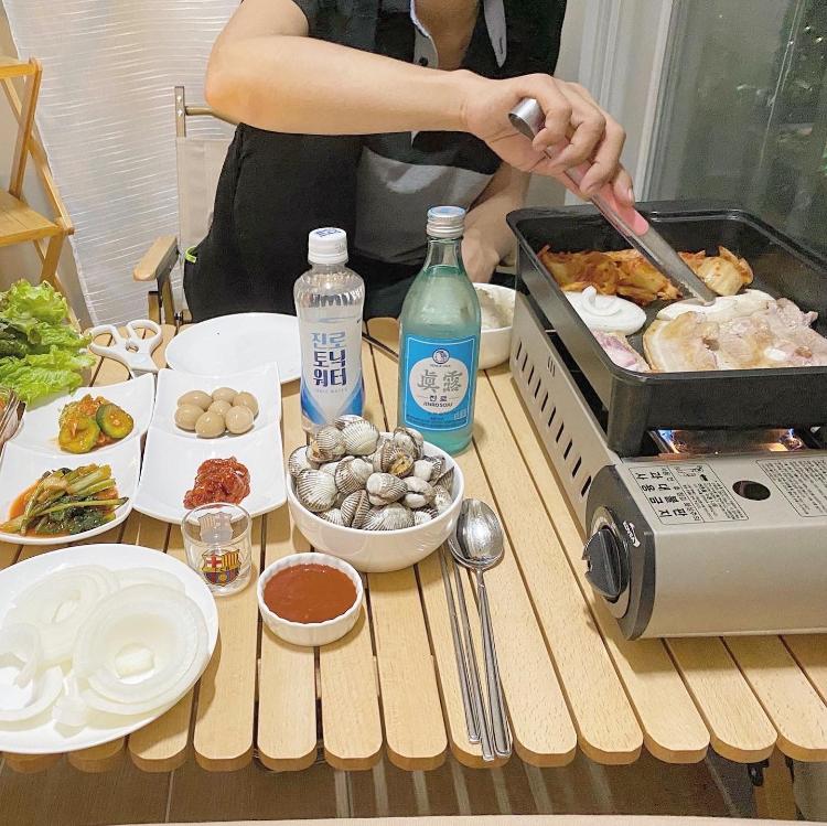 어느 저녁 베란다 캠핑