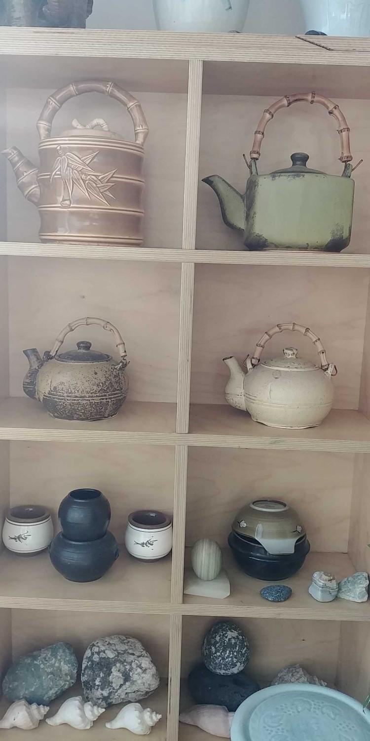 장식장에 선물 받은 도자기를 놓았어요.