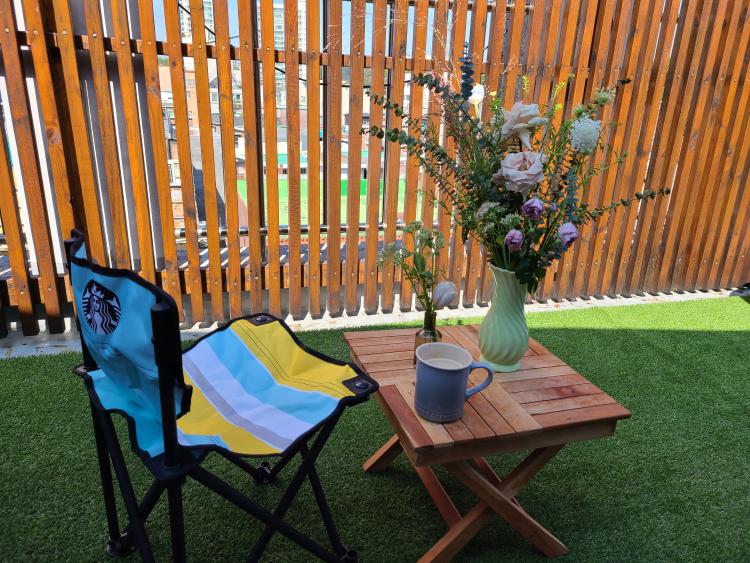 아직 추워지기 전 햇살좋을 때 테라스에서 커피마시며 멍 때리기