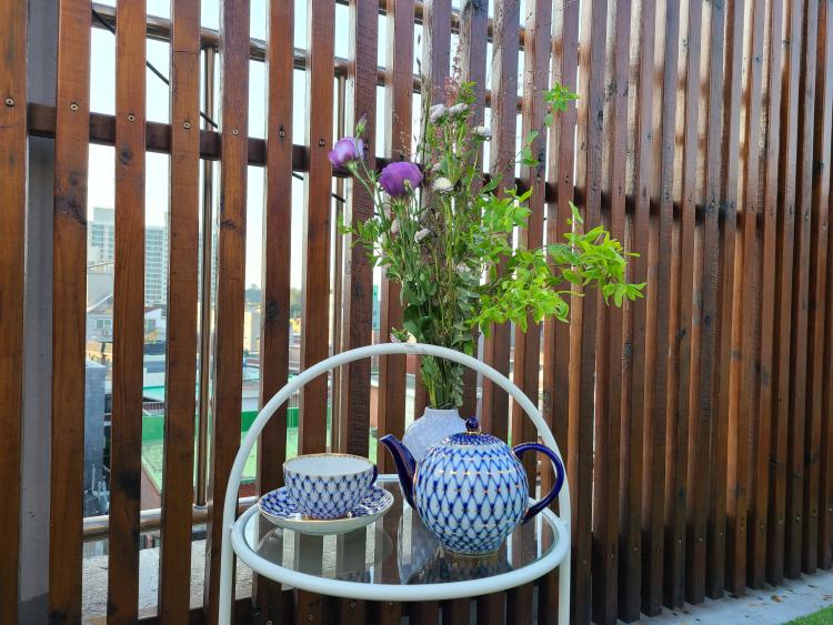 코로나 2단계 격상으로 외출이 어려울 때 테라스에서 차 한잔.