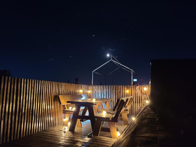 보름달 뜬 밤 테라스에서 소원빌기