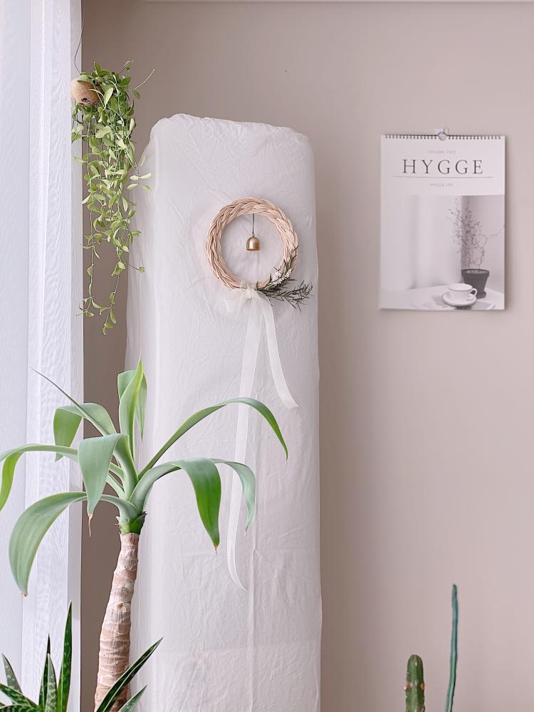여름내 열일했던 에어컨에도 옷 입혀주고 라탄리스 제작해서 걸어두었어요.