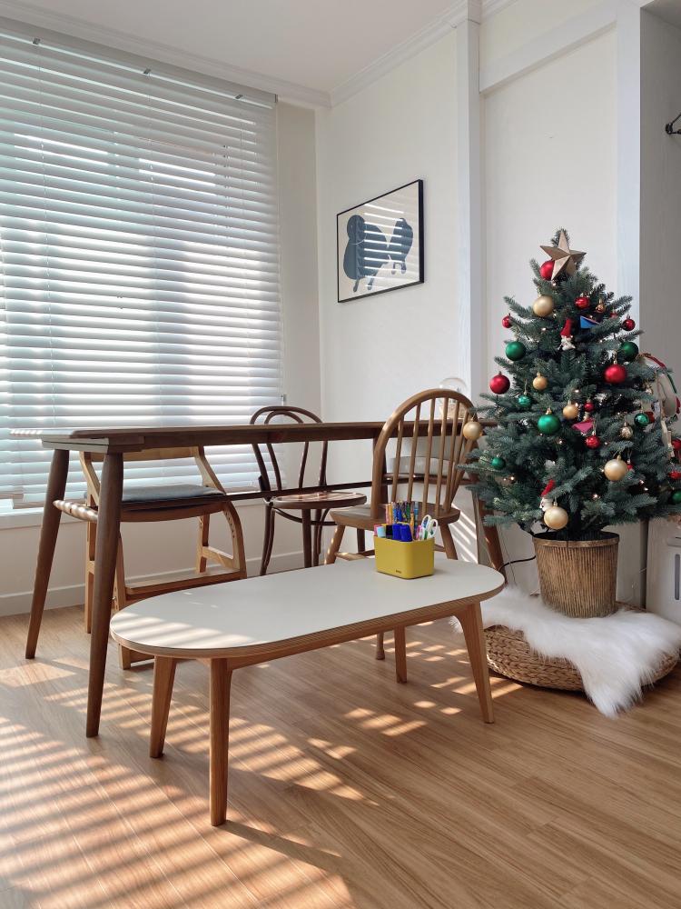 트리밑에 흰색 털 러그를 깔았더니 눈같은 느낌