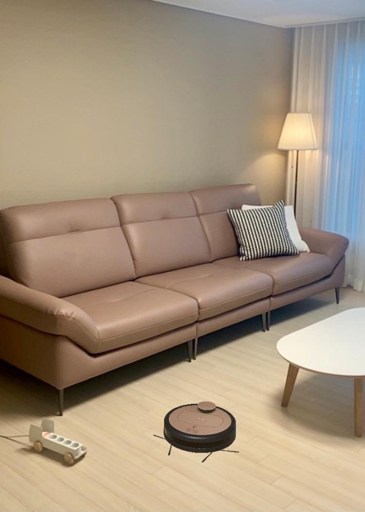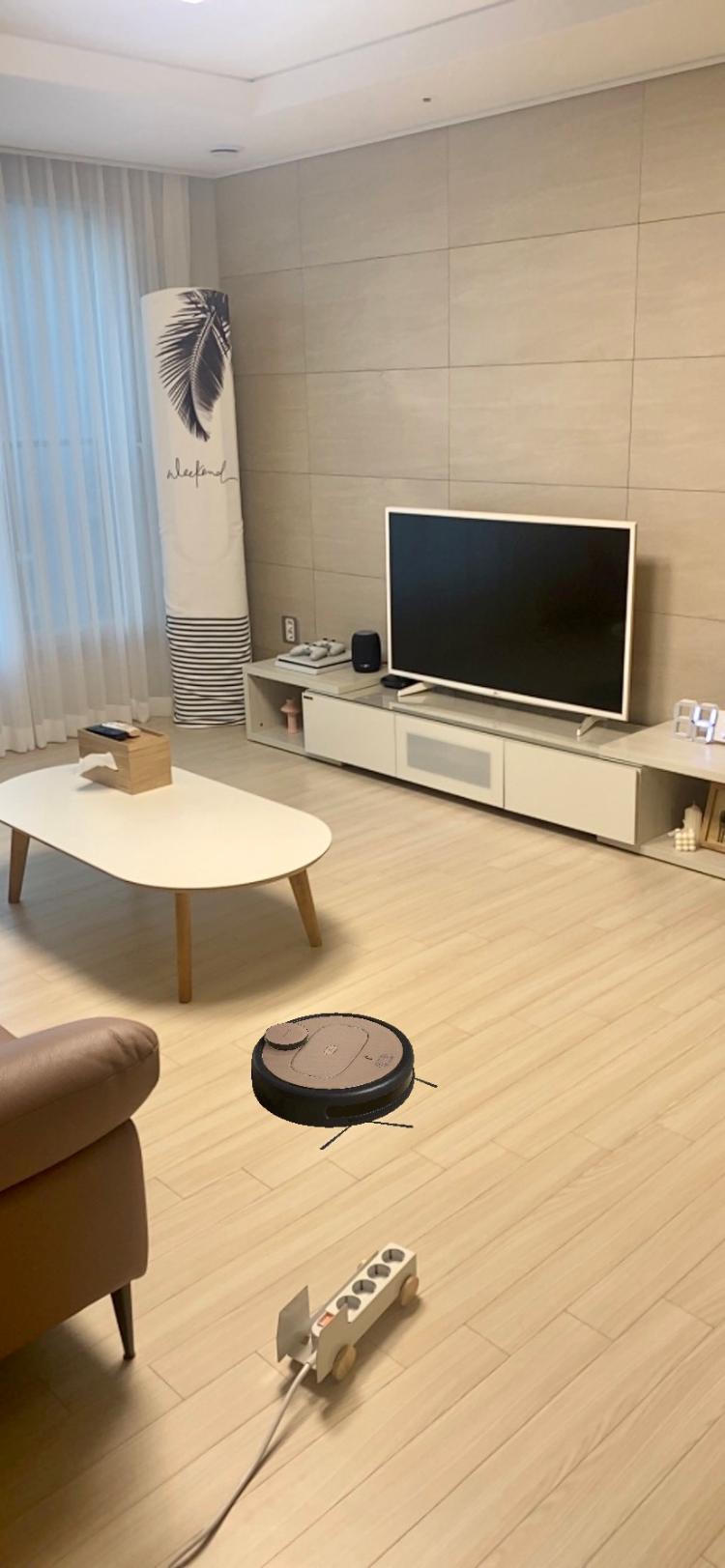 로봇청소기가 없어서 있다면 어떤 모습일까 궁금했는데 AR로 상상속 모습을 실제로 볼 수 있어서 좋네요☺️ 로봇청소기 색깔과 쇼파색이 잘 어울리는 것 같아요✨